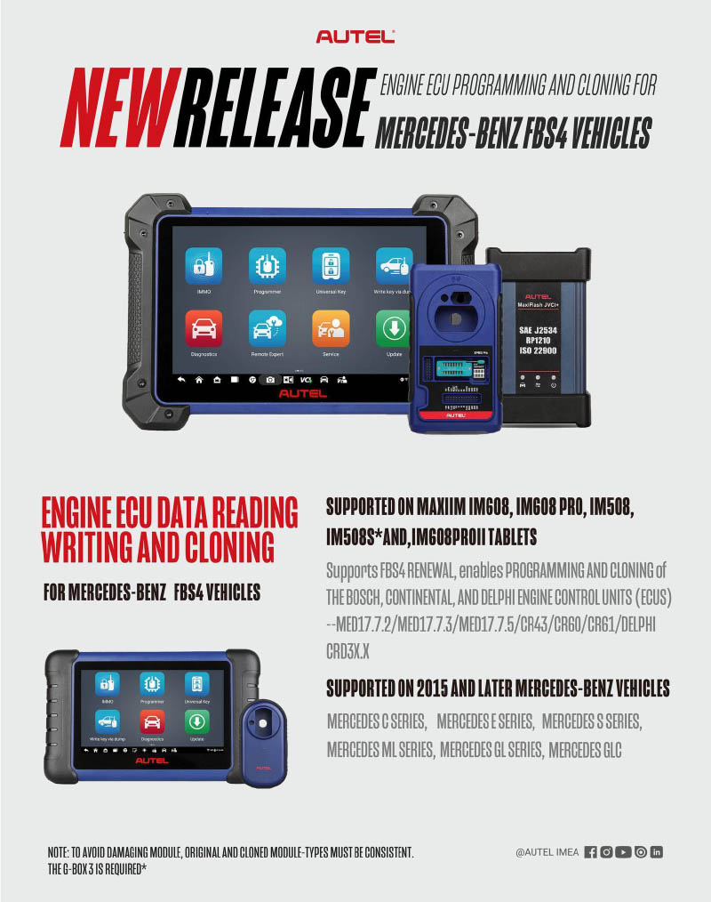 Autel IM Tablet now support Engine ECU Programming and Clone for Mercedes FBS4 Vehicles!
