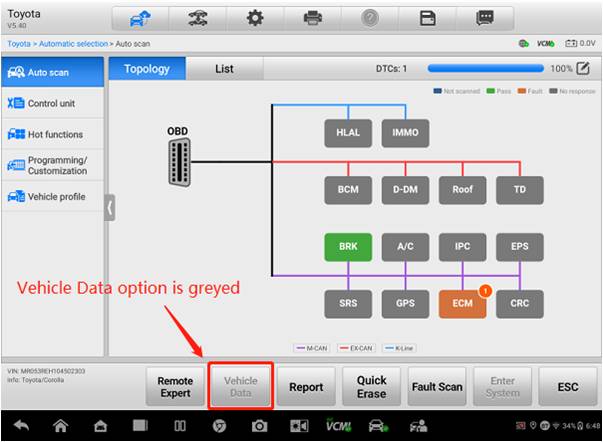 “Vehicle Data” button in menu of vehicles above will display in grey