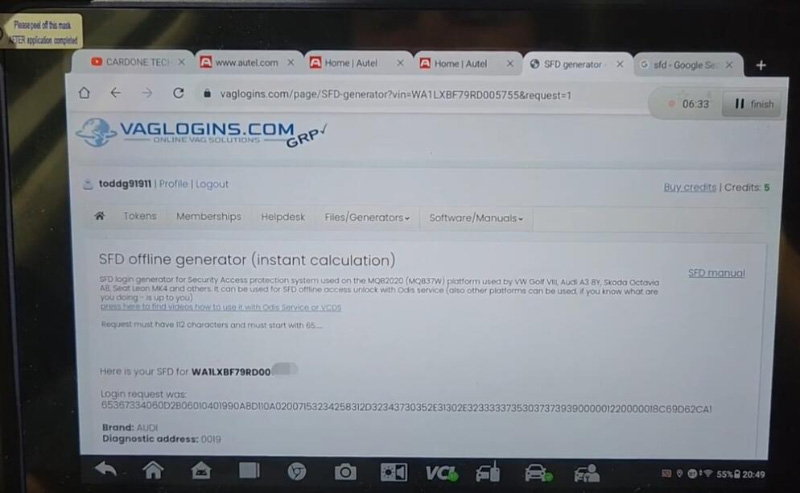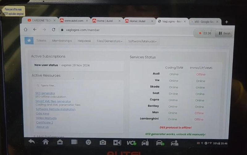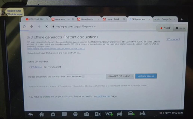One customer gave feedback that he encountered SFD protection that prevent his Autel Tablet from having access to VW or Audi modules