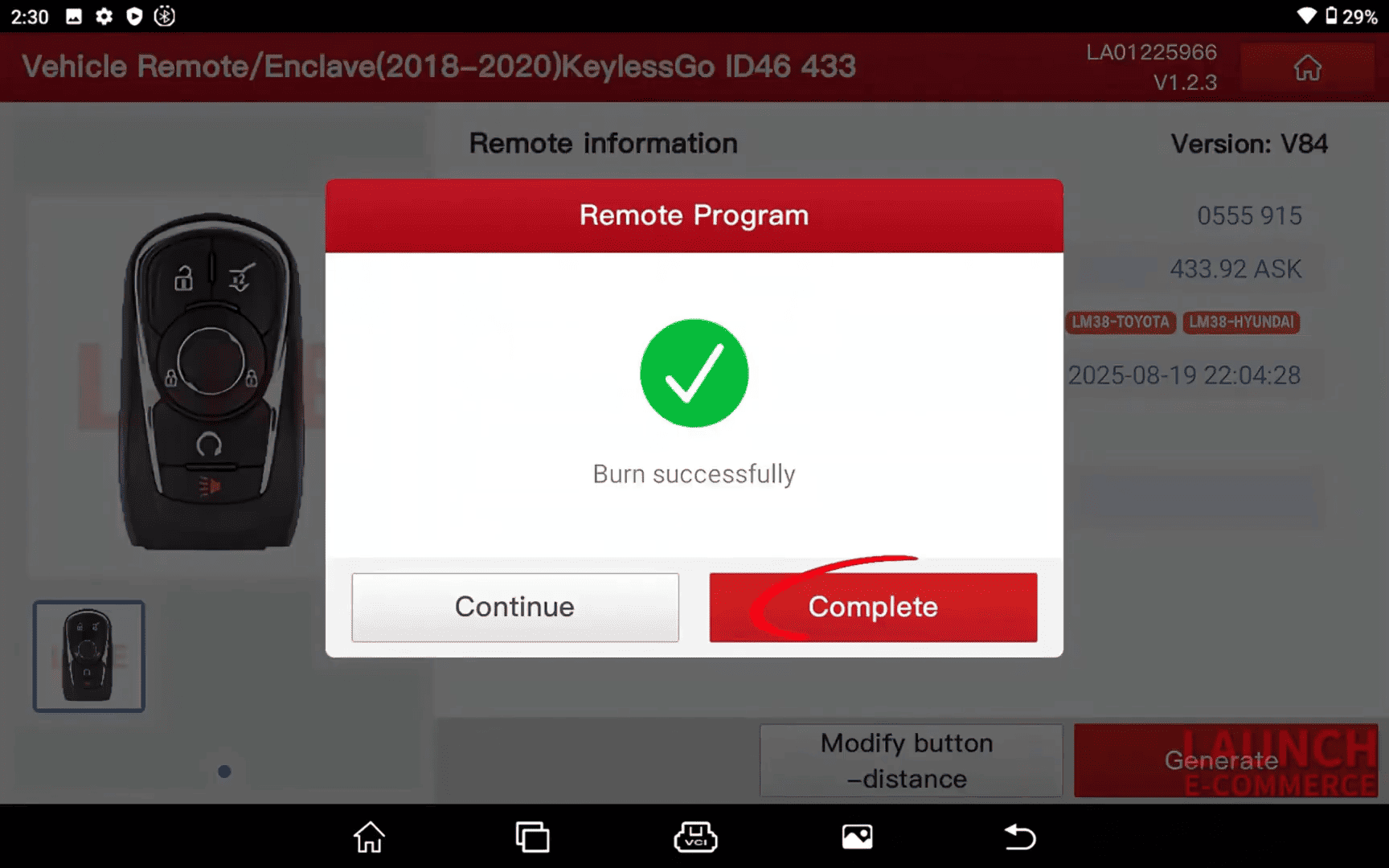 When the screen shows Program Completed, the Buick GL8 smart key programming process is finished.