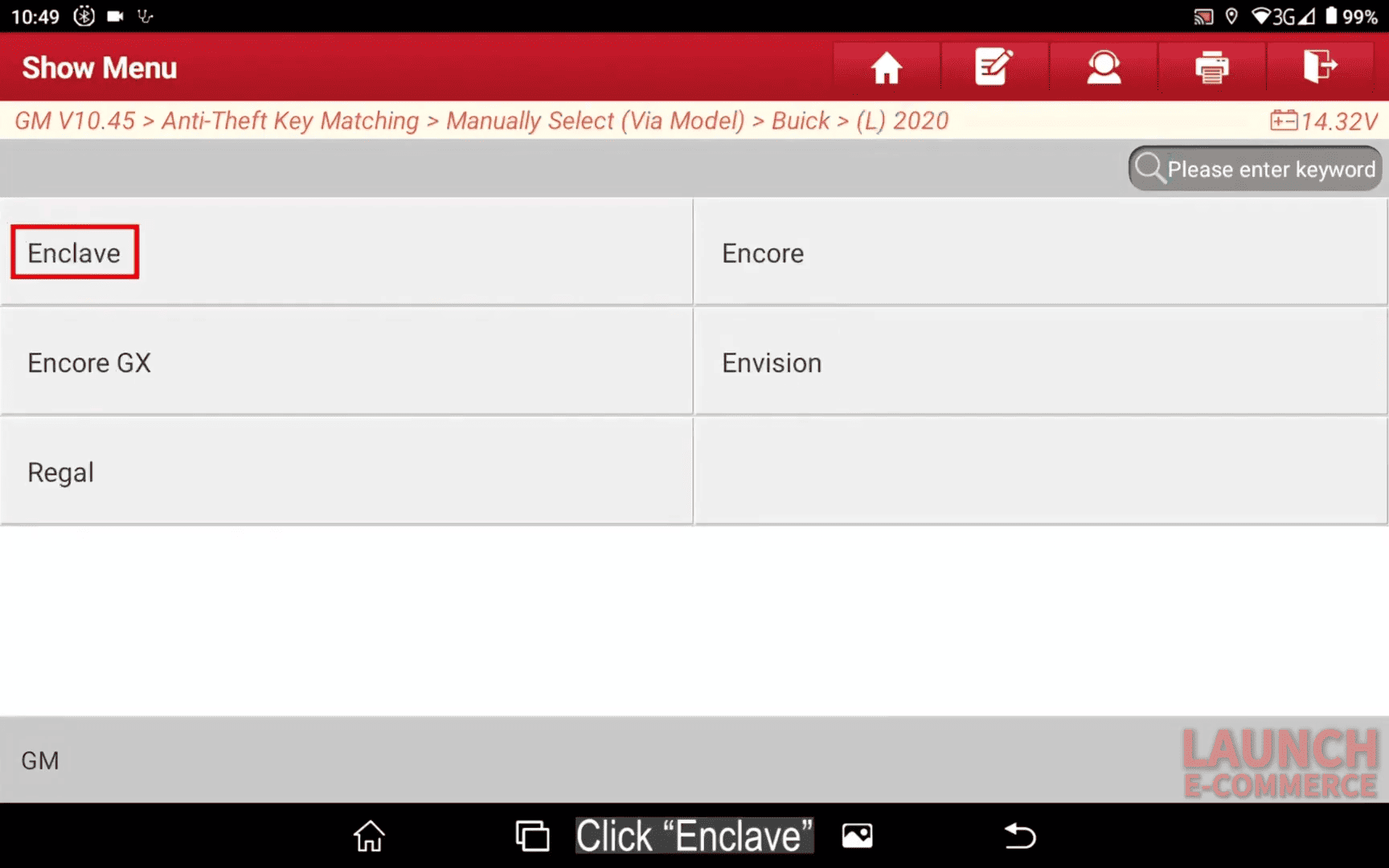 Select Buick → (L) 2020 → Enclave.