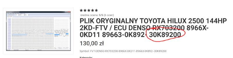 FoxFlash Programmer incorrectly identifies the software number of Toyota Hilux. Such a number (30K89200) for software designation of Toyota control units does not exist. How to select correct firmware from this data?