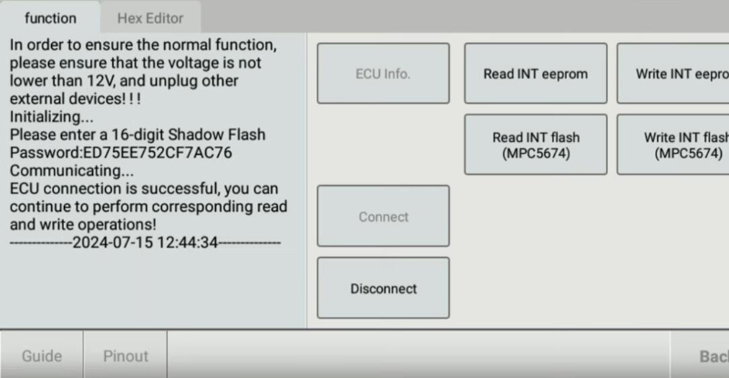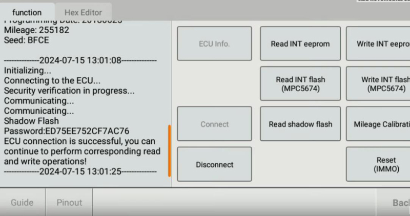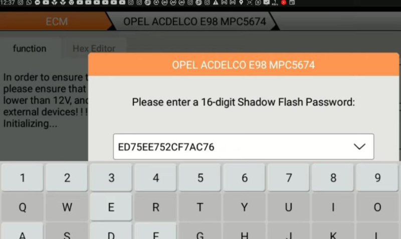 We have to get a shadow flash password whereby we already read ecu to give out the file for it.