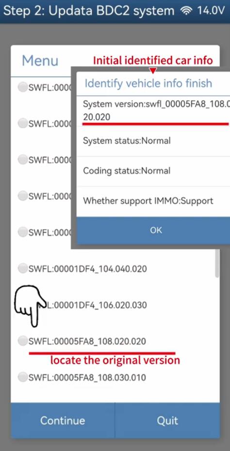 Programming restore system>>Step 2. Update BDC2 system