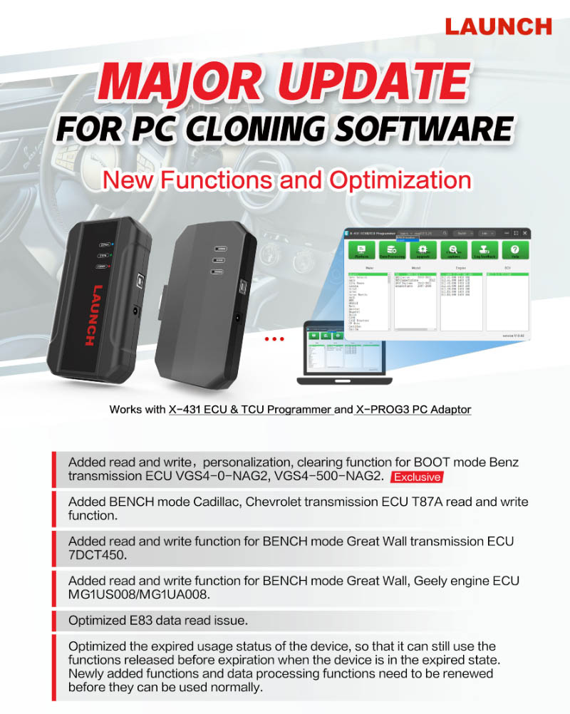 New updates are available on both X431 ECU & TCU Programmer and X-PROG3 PC Adapter.