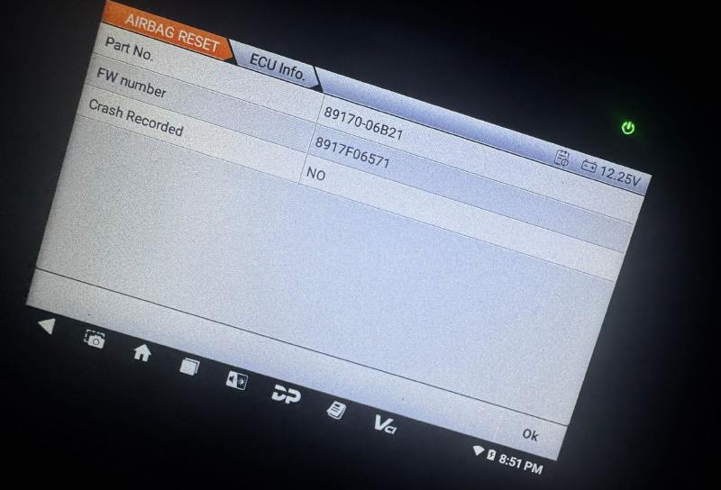 Cleaning the airbag module. TOYOTA CAMRY 2022 American, crash module, multiple detonated bags, changed bags, belt unlock, module removed and cleaned Via PinOut with OBDSTAR P50, took almost 30 minutes to do but it turned out fine.
