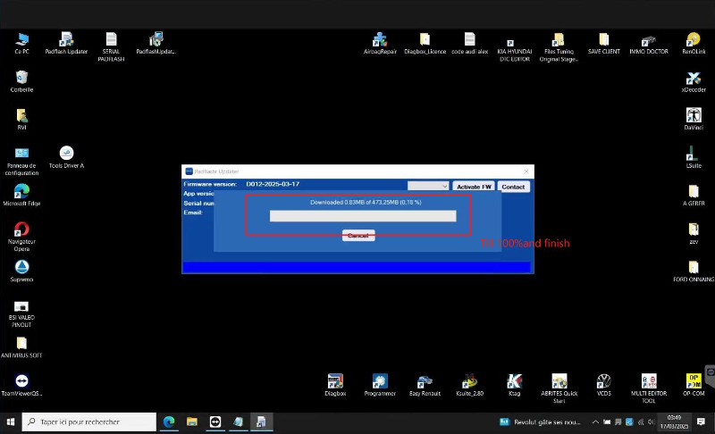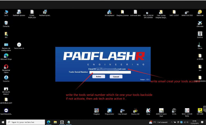 11)Run padflashr updater.exe software, click active (don’t go to desktop and run padflash.exe), wait, a windows will pop on, and write SN number with big letters