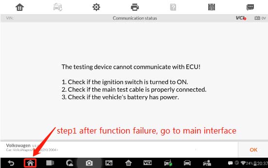 Step 1: Go back to the main screen on your IM608 Pro when a function fails.