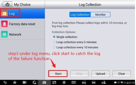 Step 3: Tap Start to record logs related to the issue, then wait while the tool collects the data.