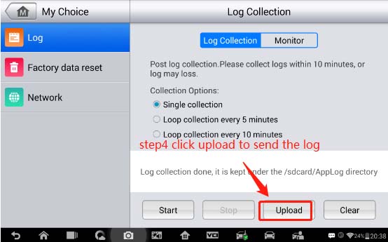 Step 4: Once collection is complete, press Upload to send the datalog directly to the Autel server.